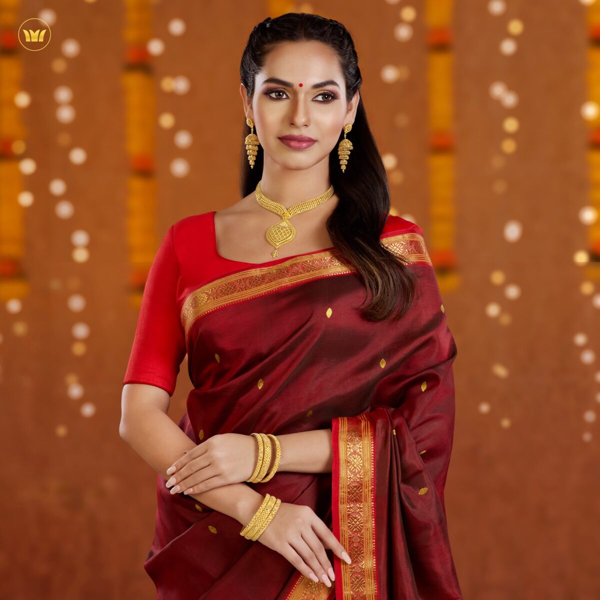 The AabhaVivah bridal set radiates timeless elegance, crafted in gold with delicate detailing and sparkling gemstones. It symbolizes pure love, eternal beauty, and the sacred union of marriage.