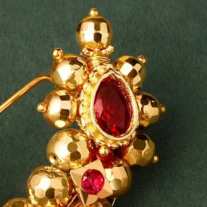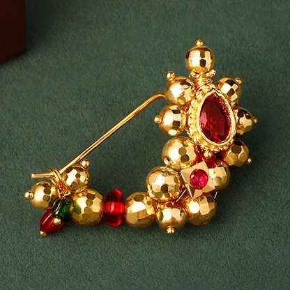 A tribute to the vibrant Lavani dance form, this nath radiates charm and energy. It’s a statement piece for those who love to embrace cultural roots with grace.