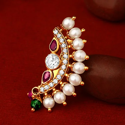 Reflecting the grandeur of the Peshwa era, this nath exudes royal sophistication. Its intricate design brings a touch of regal heritage to modern celebrations.
